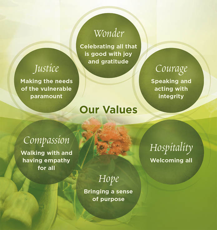 Our vision is for a community where all people are valued, where all creation is recognised as sacred and where hope, justice and courage are our hallmarks.